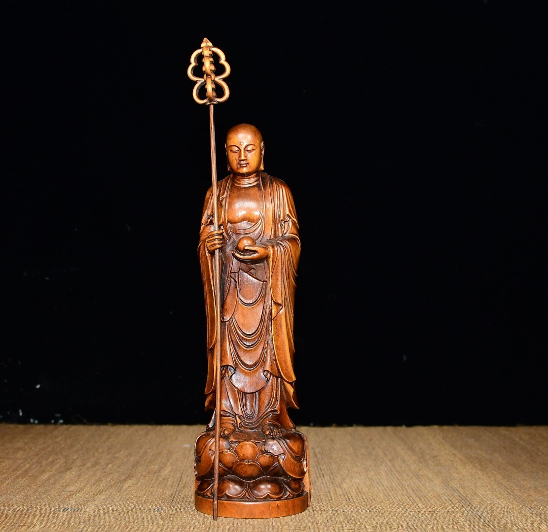 - 『館蔵珍品 黄楊木製 細密彫 地藏 置物 賞物』稀少珍蔵品 古賞物 貴重物品 収蔵品 中国古美術 時代物 古董品