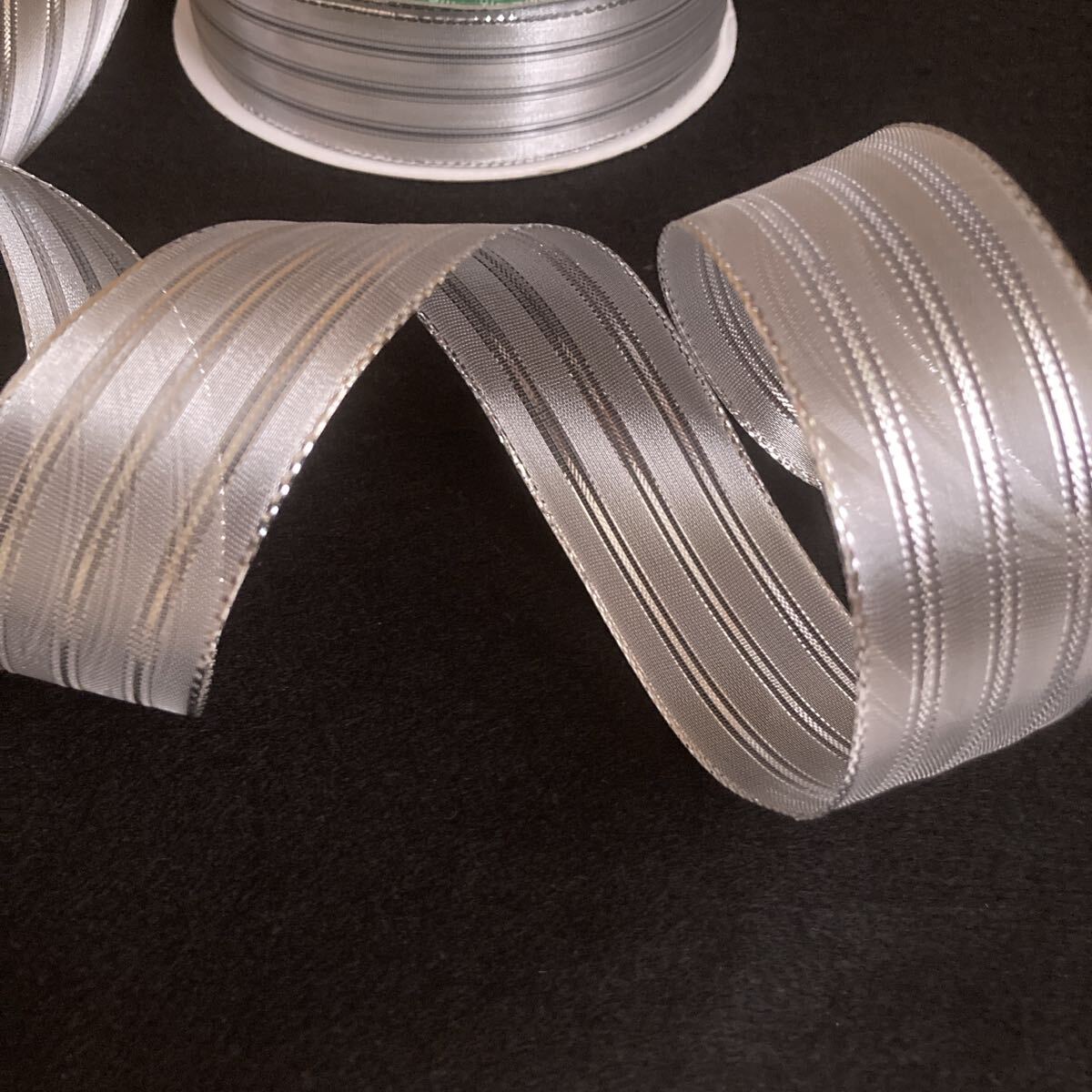 - リボン切り売り 1.5M シルバー 3.8cm幅 ストレートライン 銀色