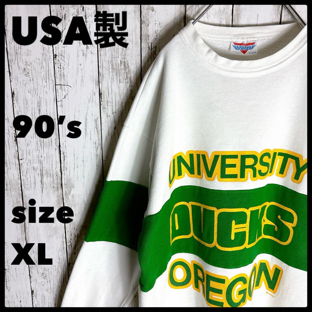 - ヴィンテージ古着 USA製 90s スウェット XL 3段プリント カレッジ