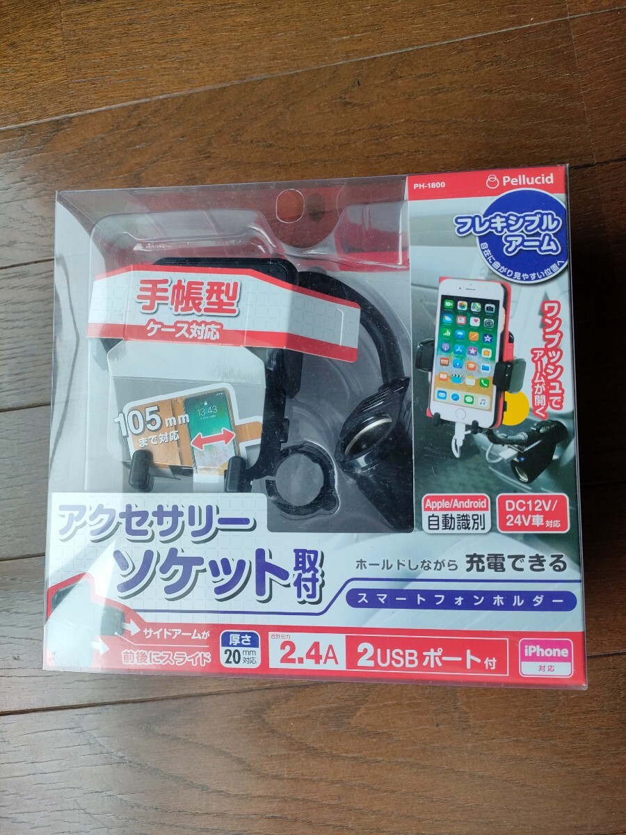 - ペルシード(Pellucid) スマホホルダー 手帳型ケース対応 2USB付 フレキシブルホルダー シガーソケット取付タイプ BK PH-1800 中古