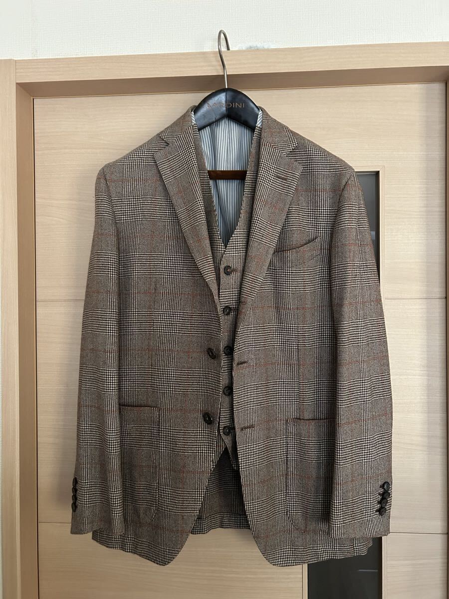 > 【試着程度】イタリー製 EIDOS/エイドス ウール コットン ソフトフランネル ウインドウペン ジャケット ジレ48 10万円位 ISAIA姉妹ブランド