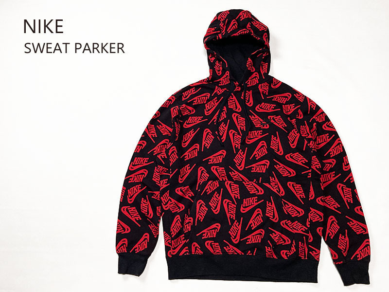 - NIKE ナイキ スウェットパーカー メンズ L 裏起毛 総柄ロゴプリント ロゴ刺繍 フーディー
