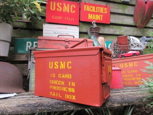 - T500C★米軍スチール製ステンシル弾薬箱(M)/アーモ缶AMMO BOXアンモ缶/米国海兵隊USMCアメリカ海兵隊DAYTONAガレージ車載工具箱USA道具箱