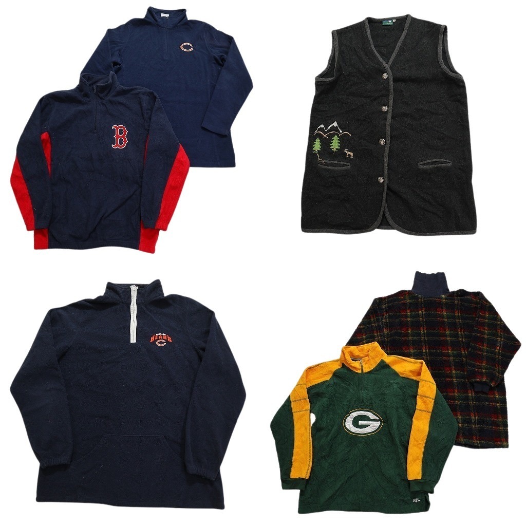 > 古着卸 まとめ売り フリースMIX 6枚セット (レディース L ) タートルネック チェック ベスト プロチーム NFL MLB NC2765 1円スタート