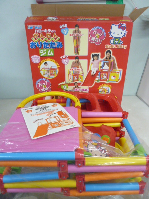 - T574 未使用保管品 WORLD ハローキティ かんたん おりたたみ ジム 「たっち」ができる頃~5才位 折りたたみ ジャングルジム 室内 遊具