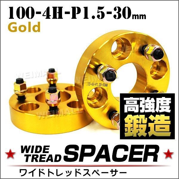 > Durax ワイドトレッドスペーサー 100-4H-P1.5-30mm ナット付 金 8D 4穴 ワイトレ トヨタ 三菱 ホンダ マツダ ダイハツ 2枚セット ホイール
