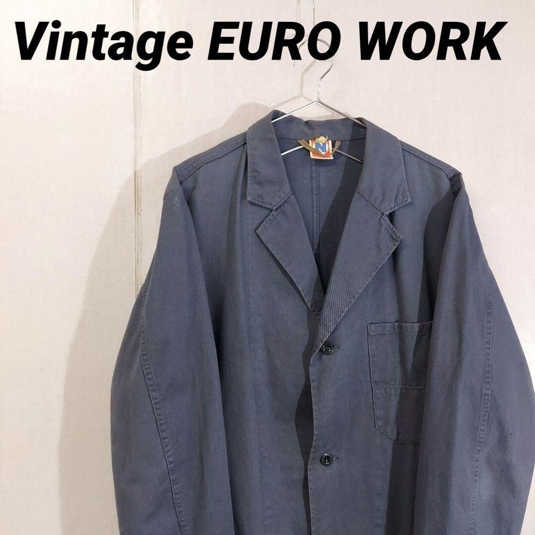 - 1円スタート! ユーロ古着 コットン ショップコート ヴィンテージ ドイツ語圏 SANFOR ブルーグレー くすみカラー