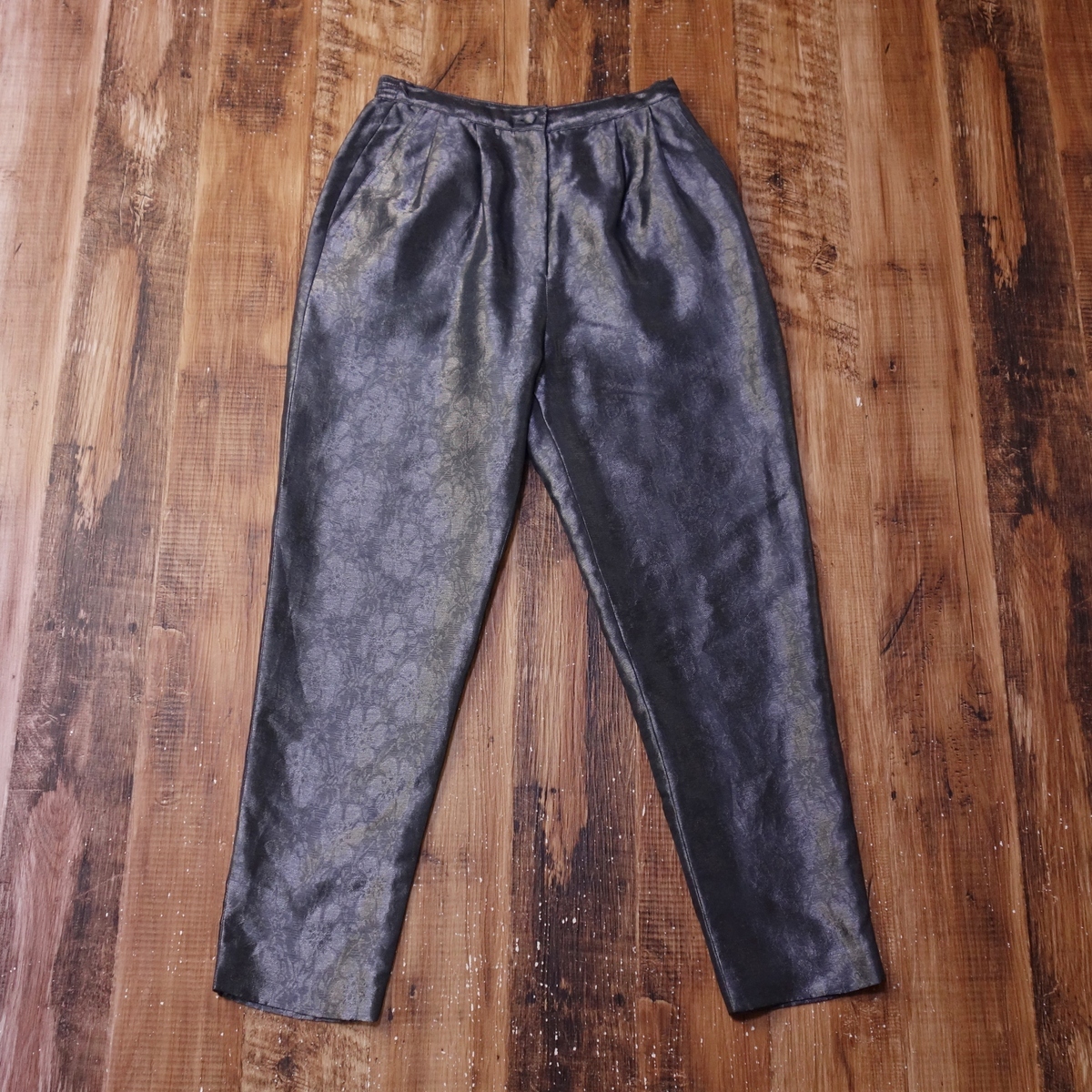 - 美品 ジャガード テーパードパンツ レディース タック きれいめ 花柄 ブラック QJ41