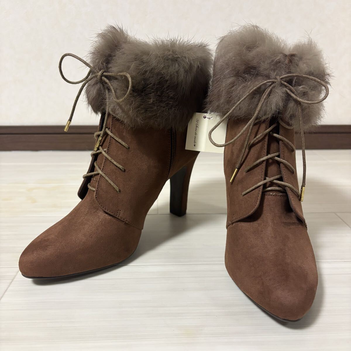 > ● 未使用 タグ付き 12000円+税 31Sonsdemode トランテアンソンドゥモード ラビットファー付き 2WAY ショートブーツ 32 Lサイズ 24.0cm 37