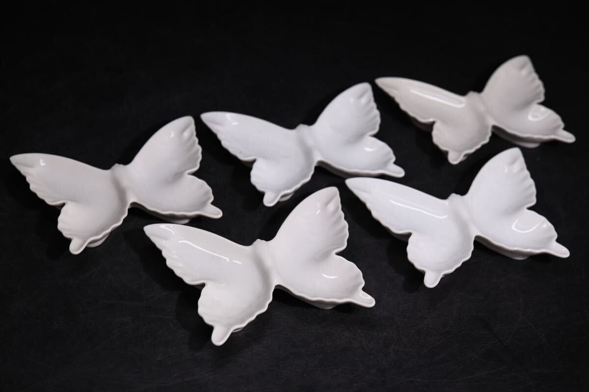 - 時代 白磁 蝶型 小皿 五客 / 中国美術 豆皿 茶器 煎茶道具 煎茶飾 検索: 徳化窯 定窯 .G2788