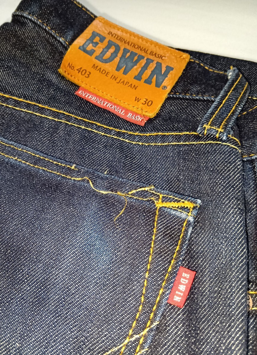 > ☆EDWIN 403 INTERNATIONAL BASIC日本製W30 インディゴブルー濃紺デニムCOTTONパンツ長ズボン ボトムス ジーパン㈱エドウィンJEANSジーンズ