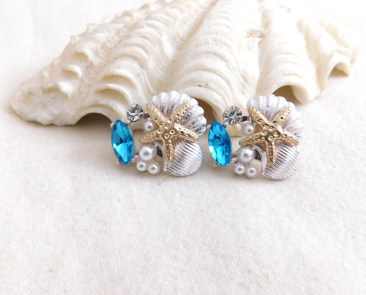 - 【新品】ヒトデモチーフのピアス 海モチーフ Fauxパール 貝殻 シルバートーンのピアス