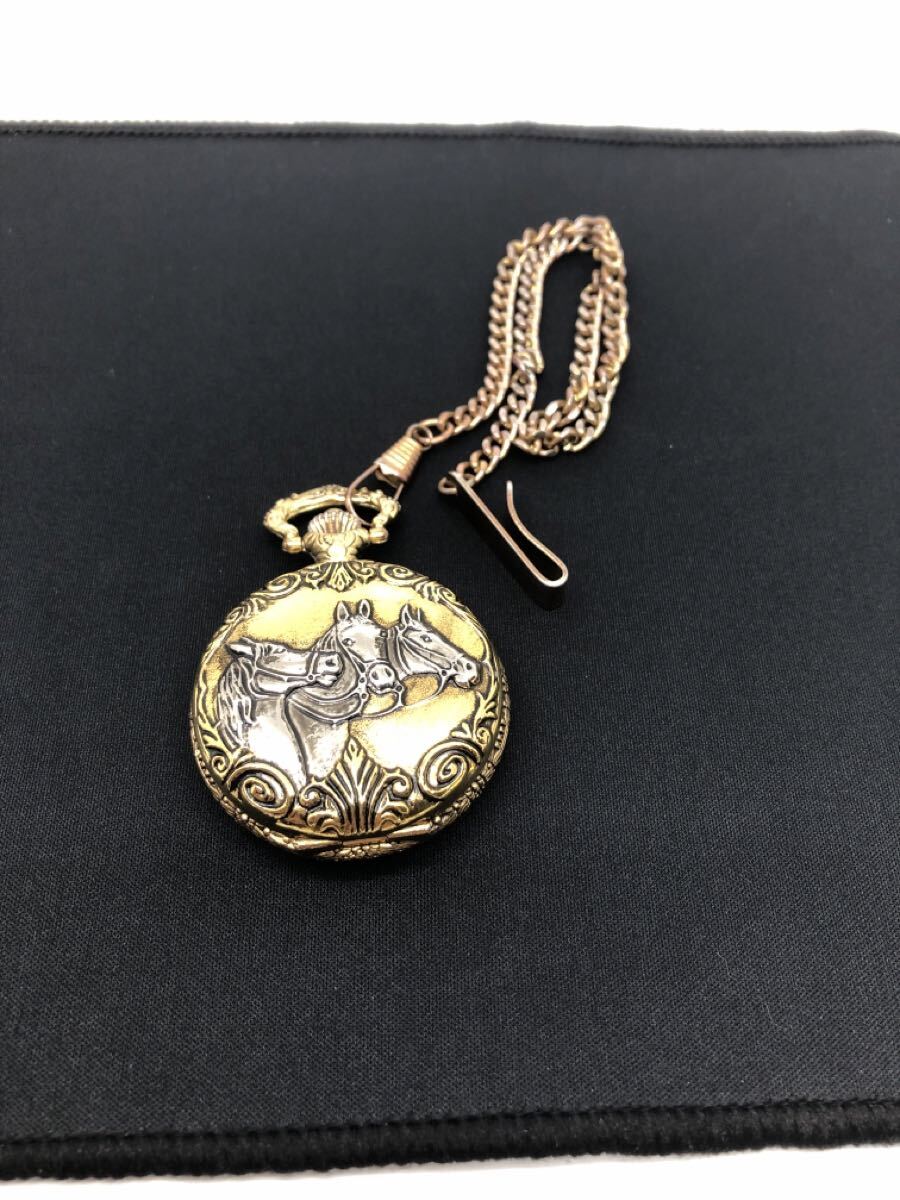 - 【美品】Giuliano 馬柄 懐中時計 ゴールド クオーツ チェーン付き