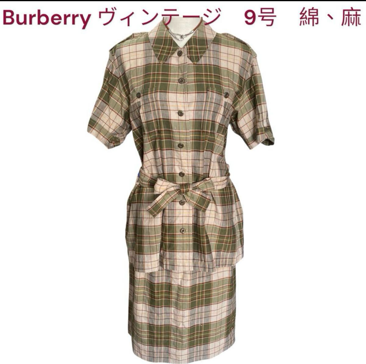 > 美品 バーバリー ヴィンテージ 綿、麻 セットアップ スーツ 9号、M Burberry's Burberry コットン リネン M、9号