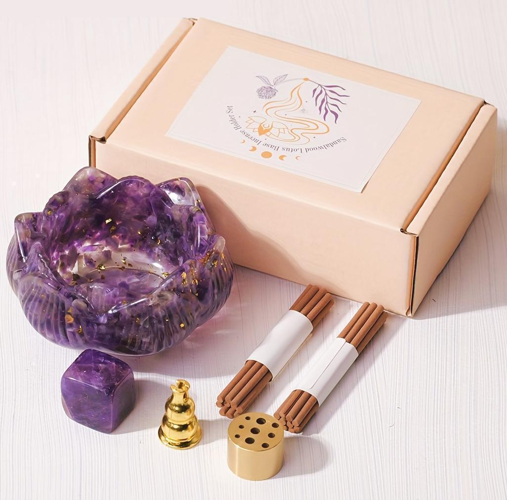 > アメジスト お香セット 天然石 浄化 オルゴナイト パワーストーン 蓮の花 香炉 インテリア リラクゼーション 風水 玄関 チャクラ 癒し