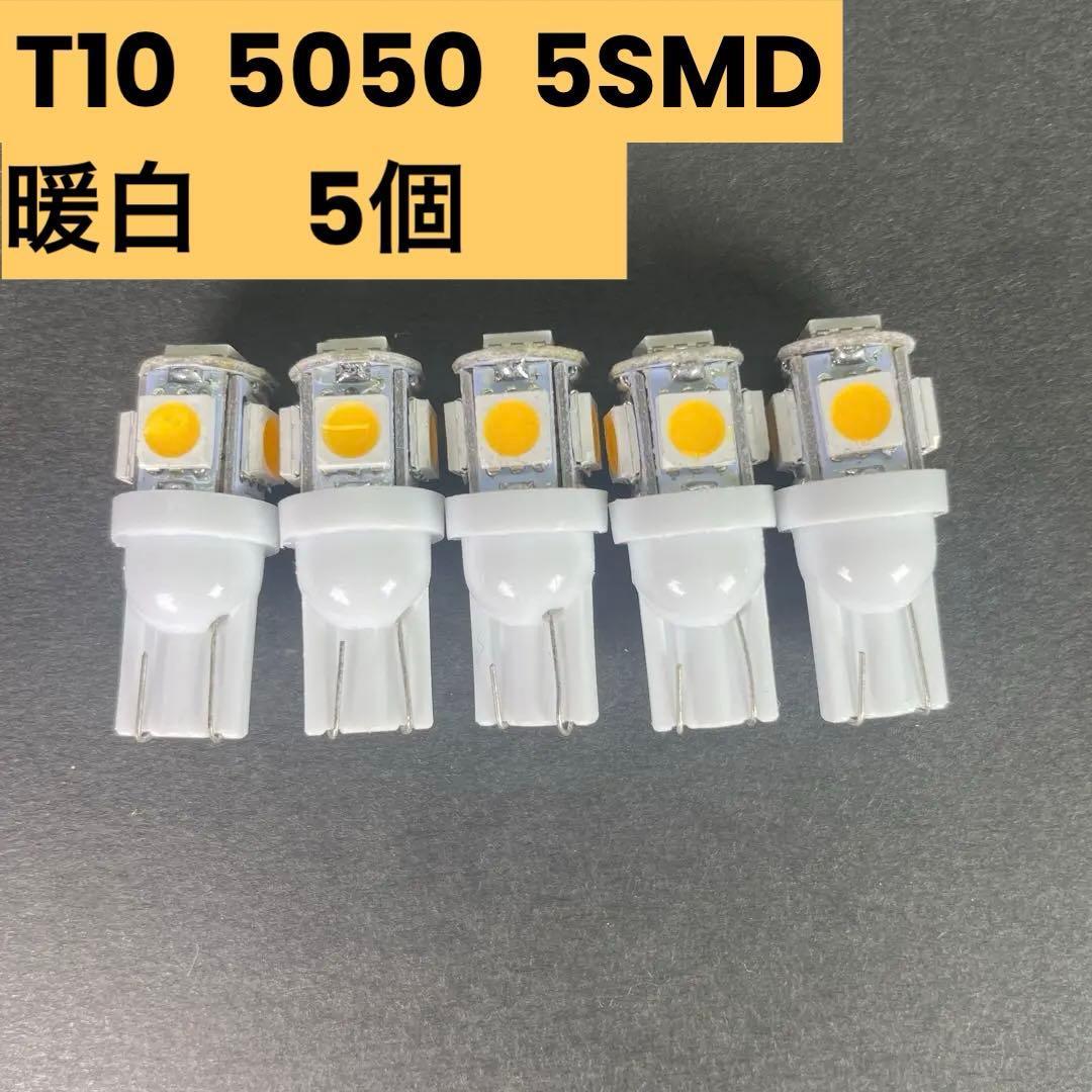 - T10 5050 5SMD 暖白 12V 5個 ウェッジ LED バルブ