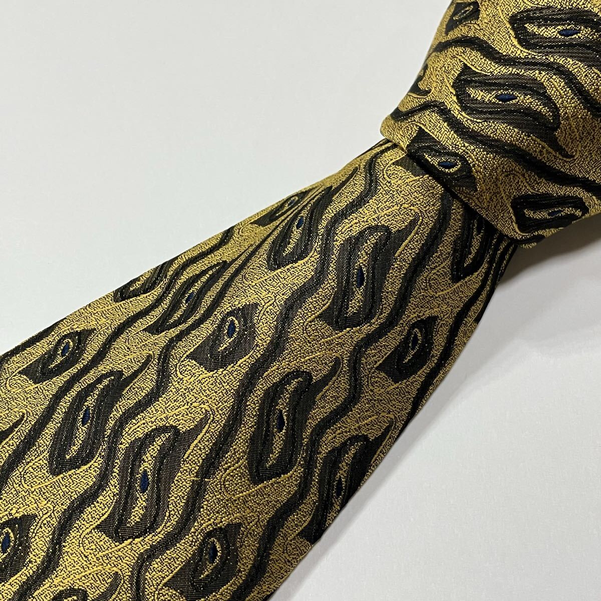 - アート ジャガード ポリ シルク ネクタイ 古着 ゴールド カーキ ネイビー 609-7