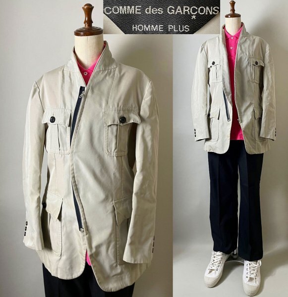 > ★【02AW 国内正規品】COMME des GARCONS HOMME PLUS コムデギャルソンオムプリュス 斜めジップ サファリ ポケット ジャケット S USED品