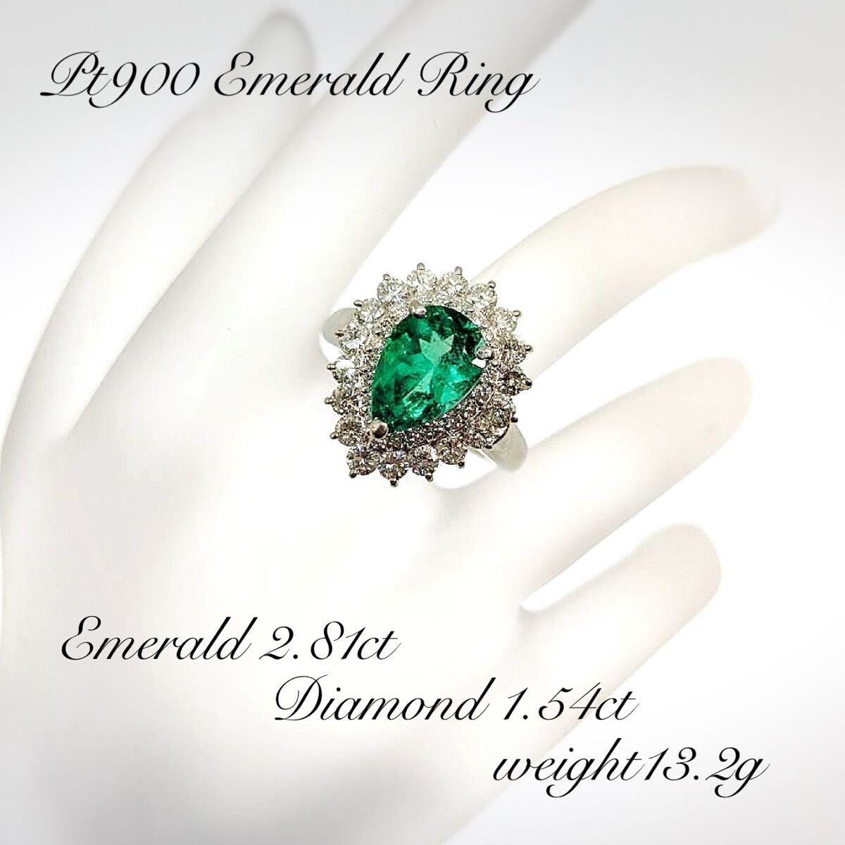 - ★送料無料★【山形県天童市さとう質店】豪華絢爛Pt900エメラルドリング鑑別書付き 新品仕上げ済み