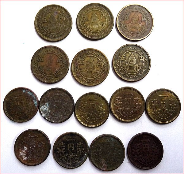 Bana8◆古銭 コレクション◆日本◆穴無し 5円 1円 黄銅貨 昭和23年 昭和24年 39円分