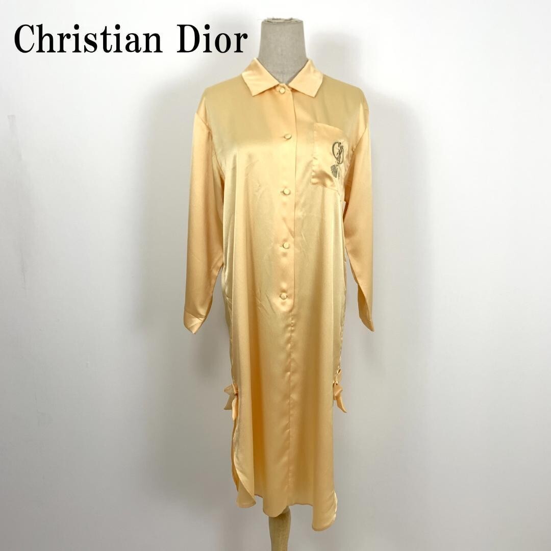 - LA7632 クリスチャンディオール Christian Dior ペールオレンジ ハーフボタン ルームウェア ポリエステル 長袖シャツワンピース M