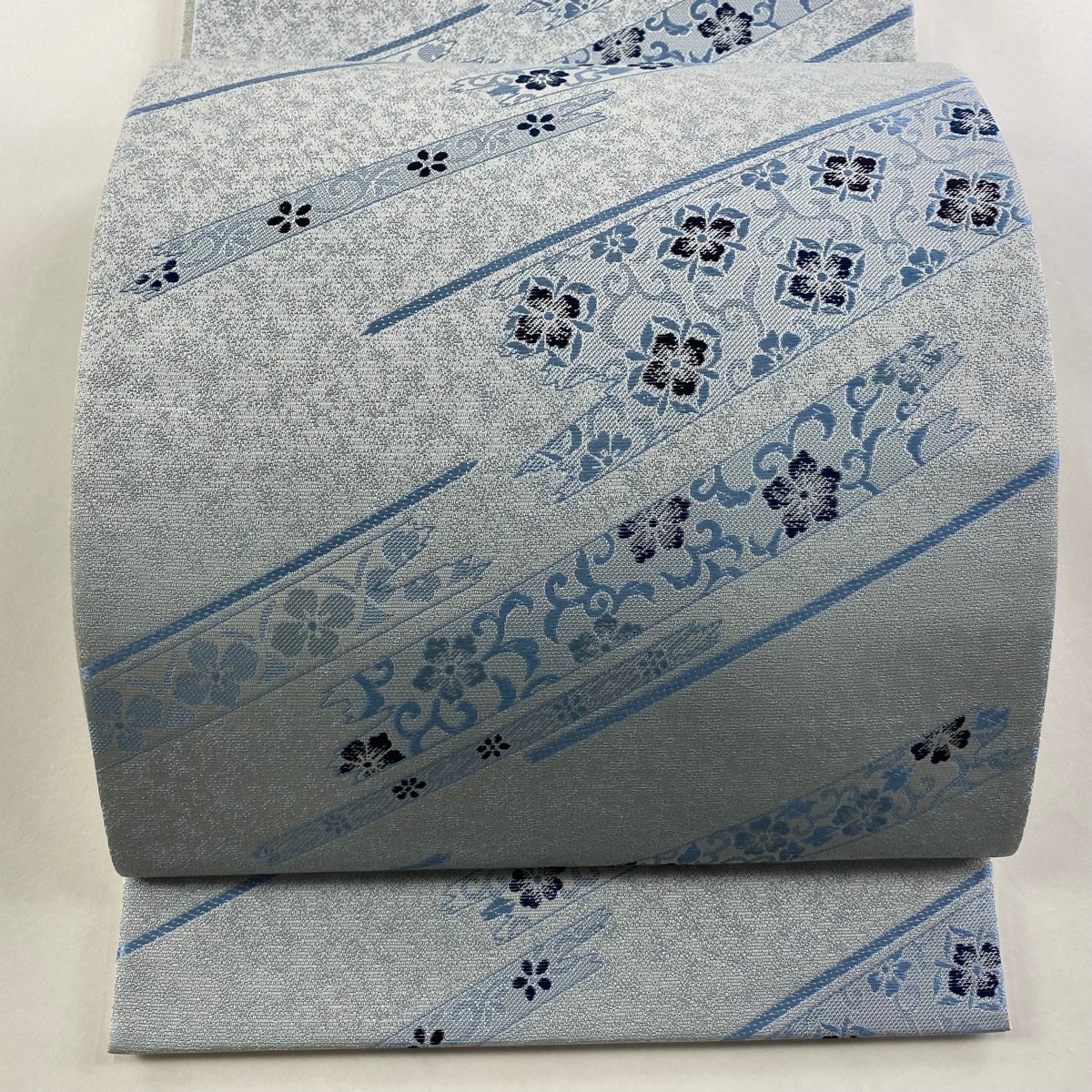 - 【美品】 袋帯 秀品 花唐草 唐織 水色 六通 正絹 【中古】