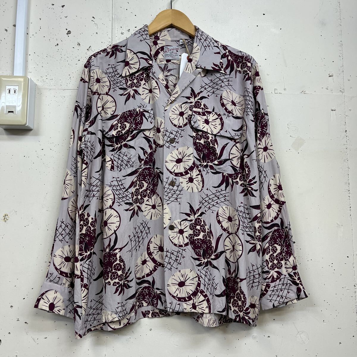 - Riviera 長袖 レーヨン アロハ 長袖シャツ 総柄 メンズ サイズL 紫 パープル サイズL