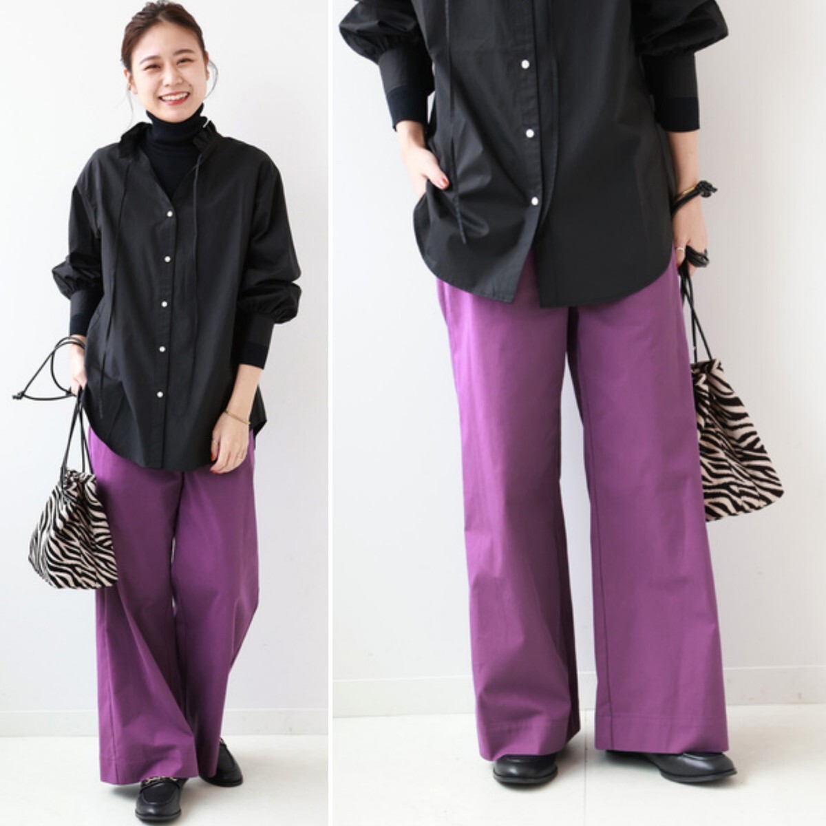 > 秋冬物★美品★JOURNALSTANDARD relume コットンストレッチハイウエストチノパンツ 定価9,350円 パープル ジャーナルスタンダード ワイド