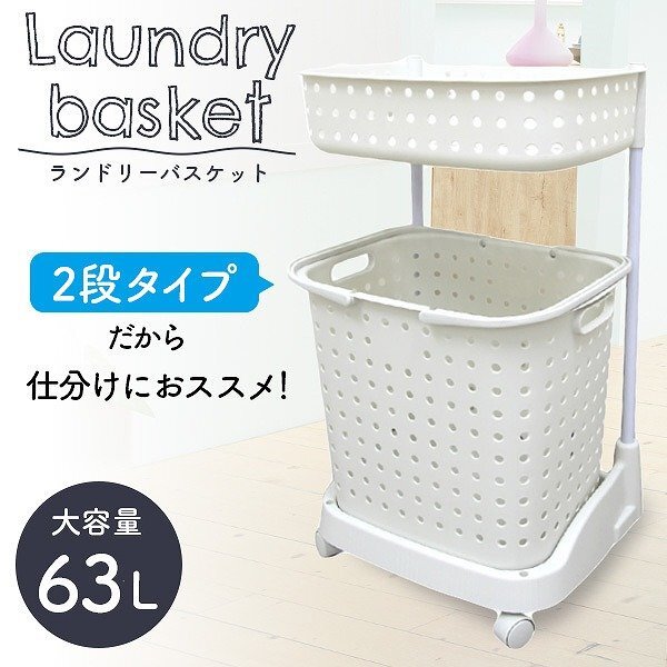 - 【大容量 約63L】ランドリーバスケット ランドリーワゴン 2段 キャスター付 スリム 洗濯かご 脱衣カゴ 衣類 洗濯物入れ 洗濯物 脱衣所