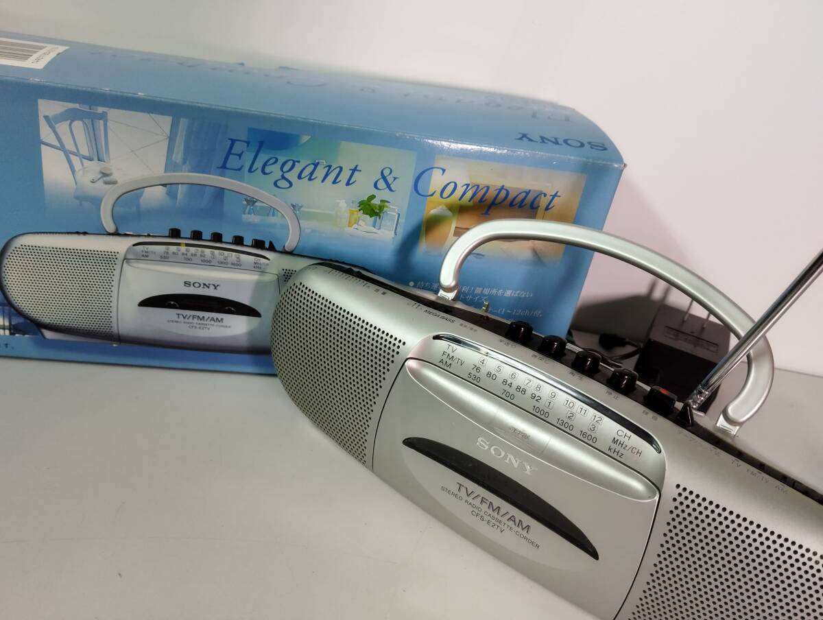 > ★動作品★ ラジカセ SONY CFS-E2TV シルバー ラジオ 90年代 カセットレコーダー FM/AM
