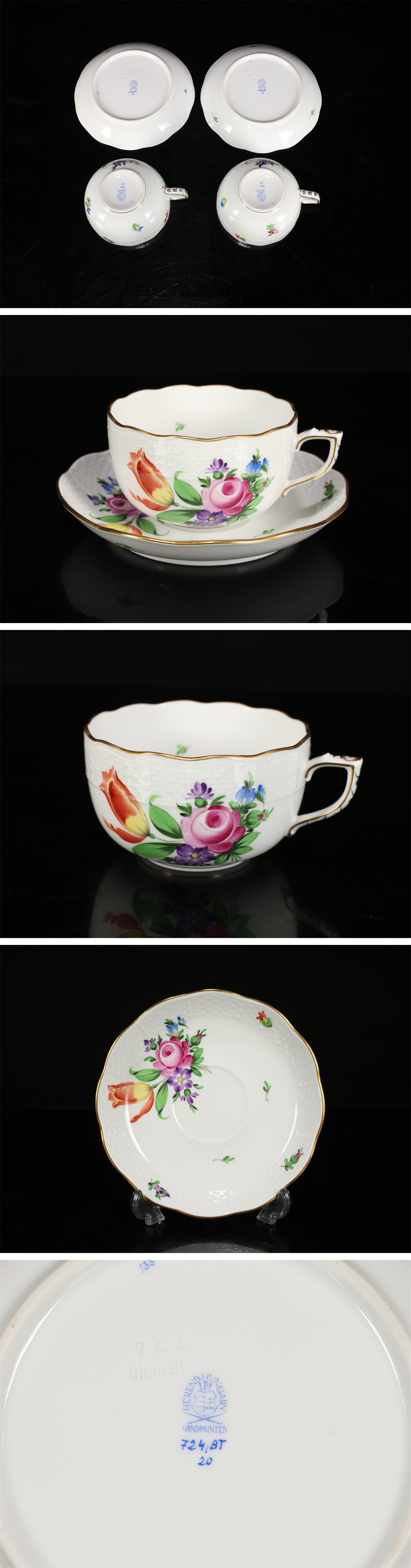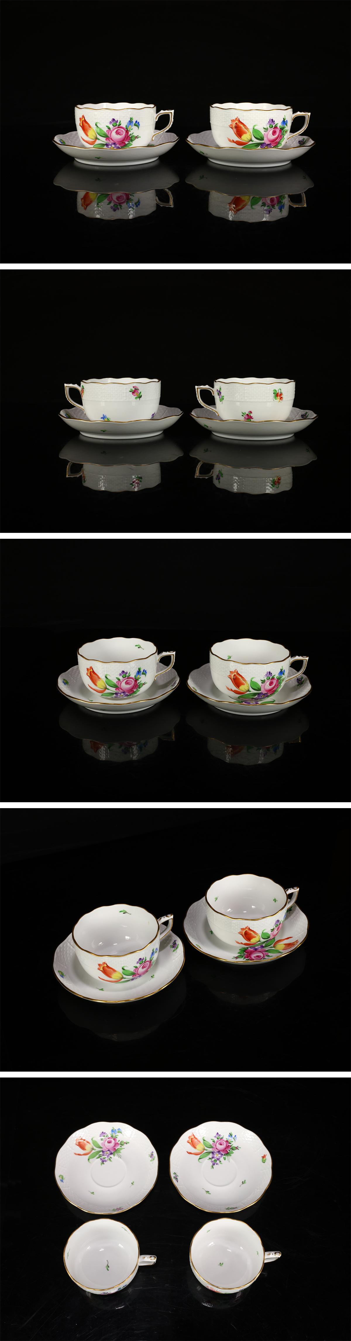 - 【吉】CN286 Herend 【ヘレンド】 金彩色絵ROYAL ALBERT 【ロイヤルアルバート】 Old Country Roses 赤薔薇紋 カップ&ソーサー 2組 4点セ