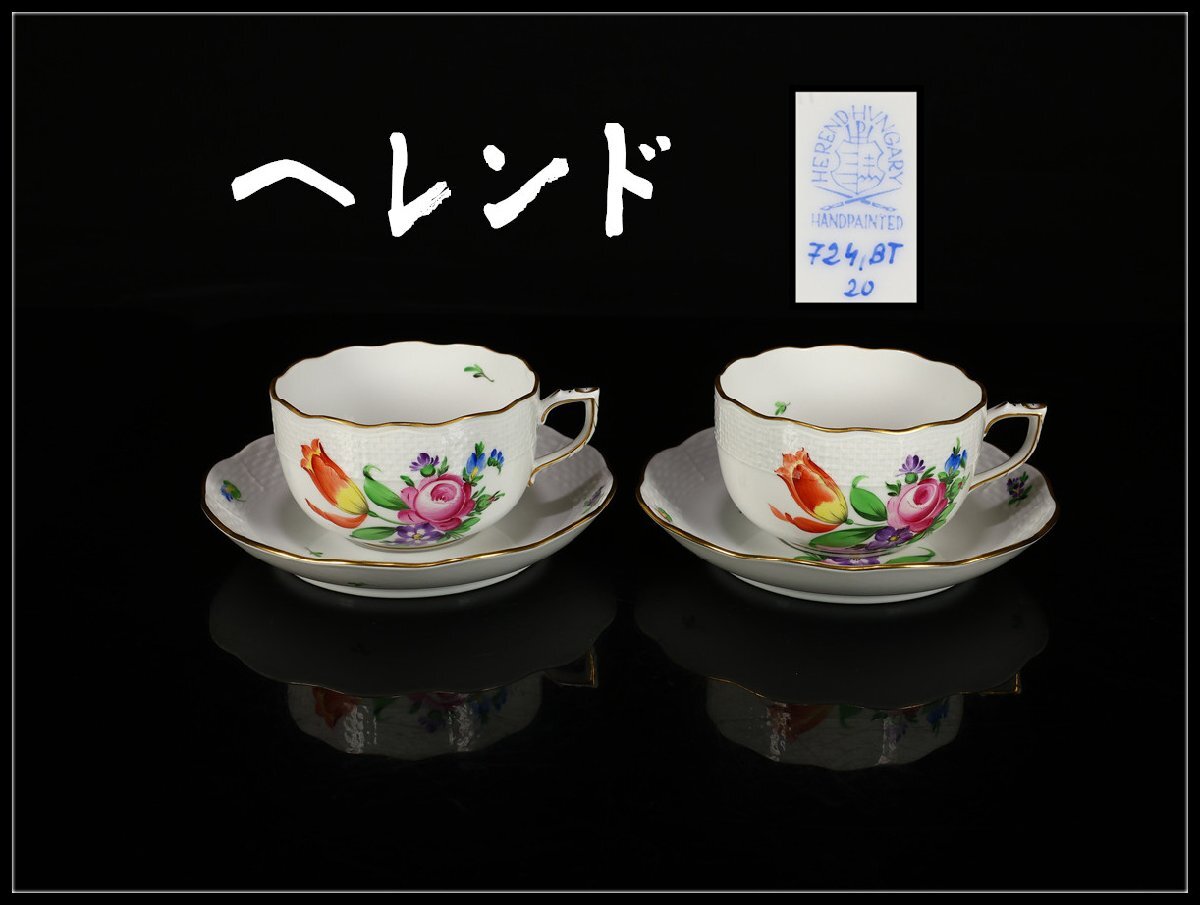 > 【吉】CN286 Herend 【ヘレンド】 金彩色絵ROYAL ALBERT 【ロイヤルアルバート】 Old Country Roses 赤薔薇紋 カップ&ソーサー 2組 4点セ