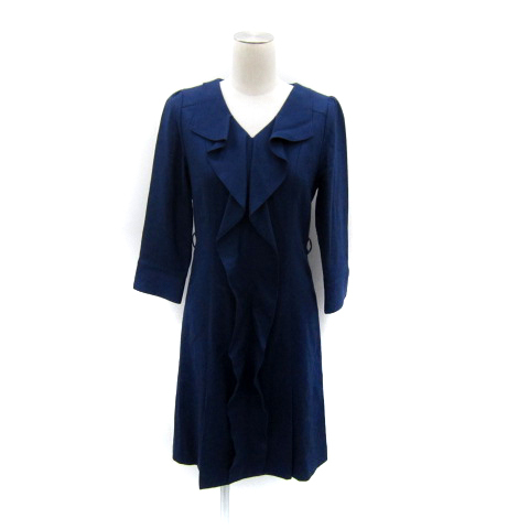 > ビアッジョブルー Viaggio Blu ワンピース ひざ丈 長袖 Vネック 無地 フリル ウール 1 紺 ネイビー /SY30 レディース