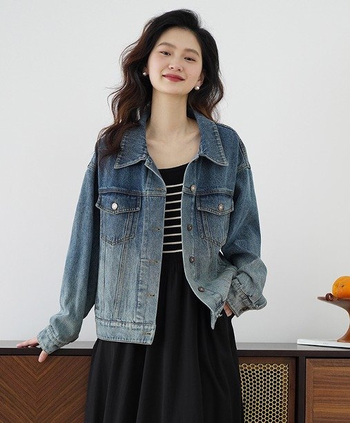 - Gジャン ジージャン ジーンズ 長袖 切り替え 体型カバー 着痩せ デニム シンプル XL ブルー