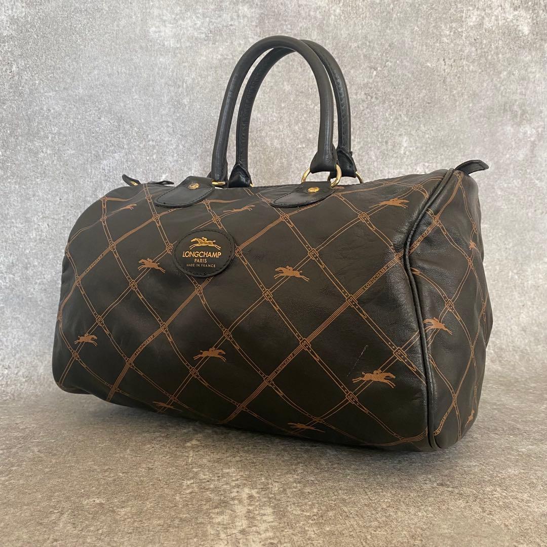 - ロンシャン ハンドバッグ ミニ ボストンバッグ ナイロン レザー 千鳥柄