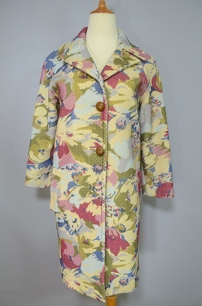 > A1783/美品 秋冬 LALTRAMODA ラルトラモーダ ウール 花柄 総柄 くるみ釦 ロング チェスターコートL 11程 マルチカラー/レディース 三喜商事