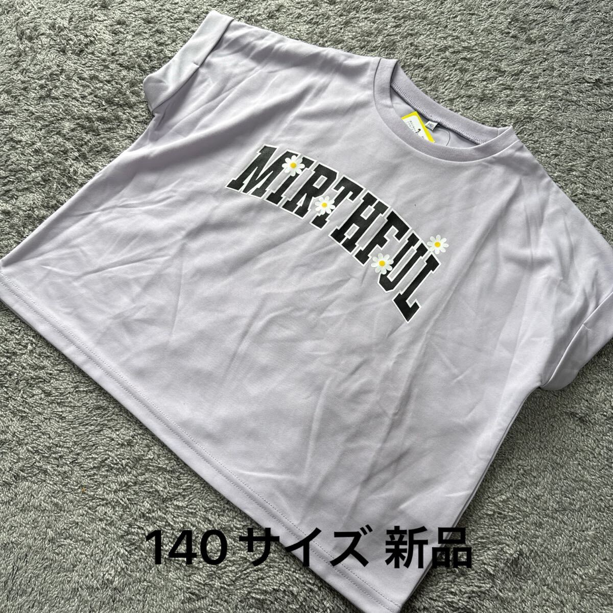 - ロール袖花ロゴプリント半袖Tシャツラベンダー140★ゆうパケット配送可能★新品34