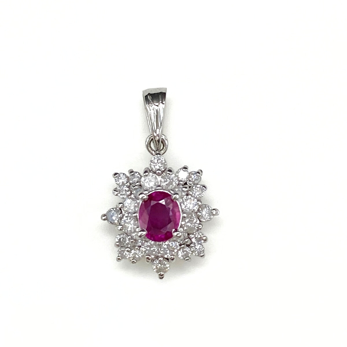 > ルビー ペンダントトップ プラチナ メレダイヤ ペンダントトップ Pt900 ルビー ダイヤモンド レディース 【中古】