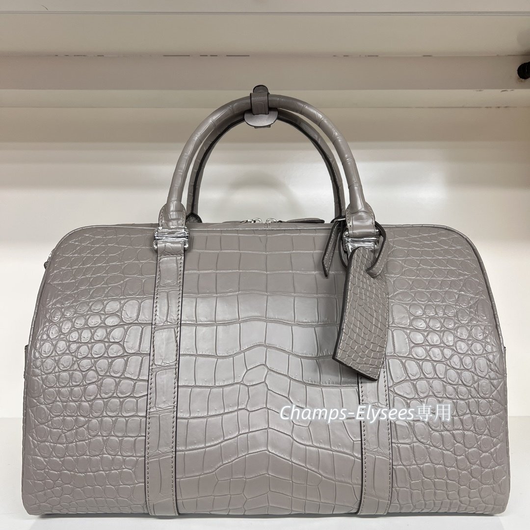 > ハイセンス クロコダイルレザー 大容量 旅行バッグ ボストンバッグ 本物鰐革 腹革 マット仕上げ 革鞄 グレー