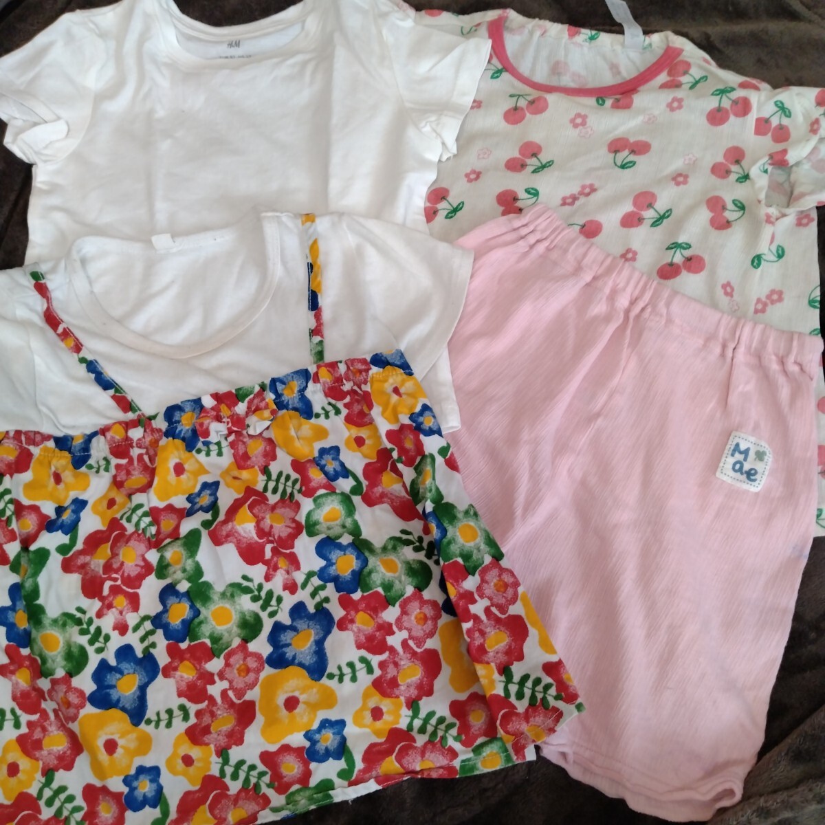 - ベビーキッズ洋服☆90サイズ花柄チュニック&白Tシャツ☆80サイズパジャマ☆まとめ売り