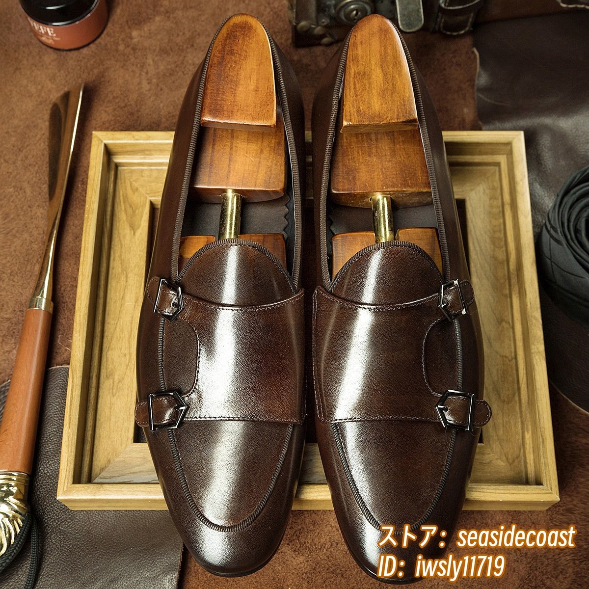 - 極美品◆レザーシューズ 本革 ビジネスシューズ メンズ イタリア最高級牛革 職人手作り モンクストラップ紳士靴 結婚式 革靴 珈琲色 26.5cm