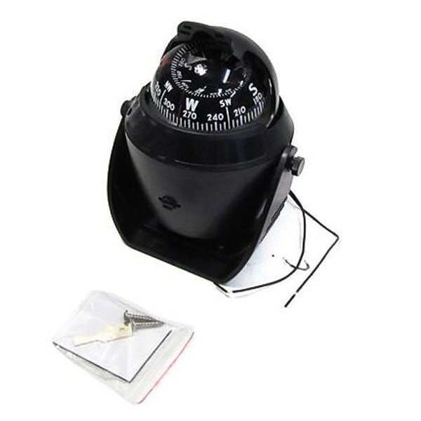 - LEDライト付き マリンコンパス ボートコンパス 12V ブラック 黒 夜間照明付き カバーフード付き 両面テープ付き