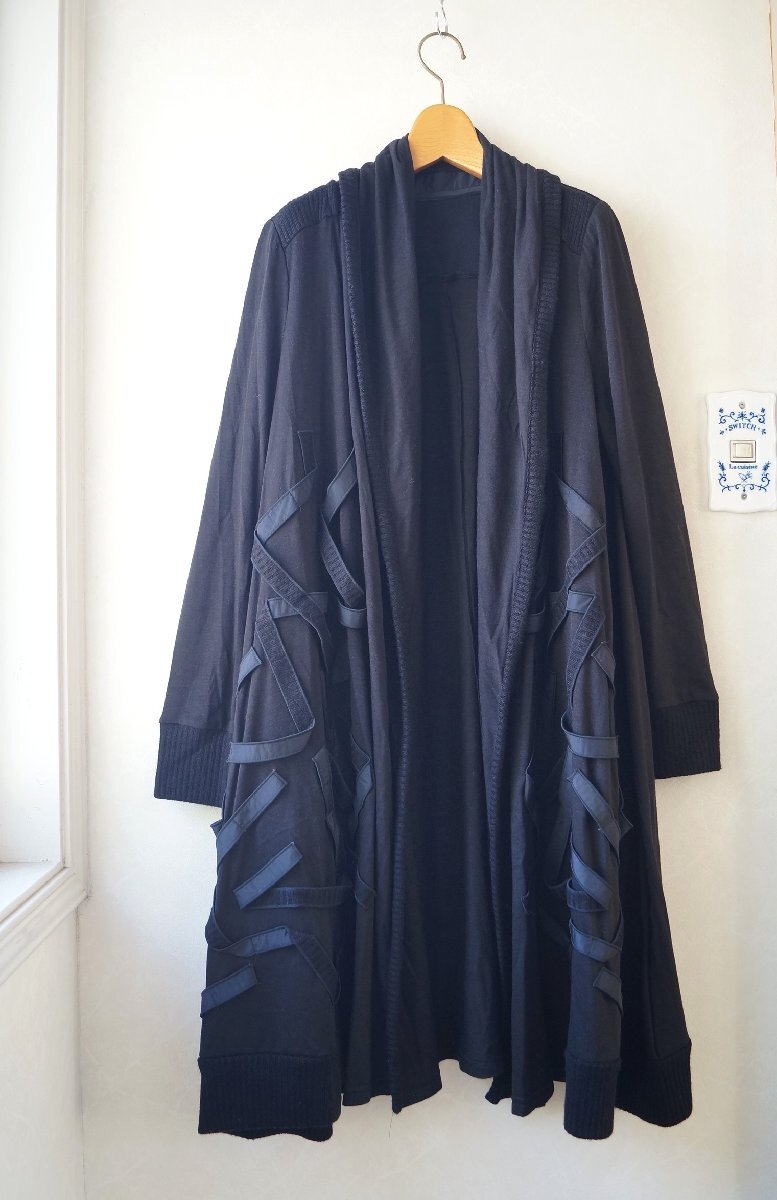 > ★ EIKO KONDO /エイココンドウ * フロントリボン ロングカーディガン ジャケット コート/黒 42* 古着のgplus広島 2510t2