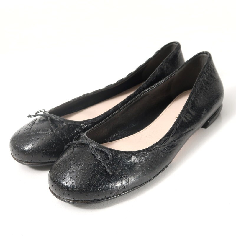 - GS3822*イタリア製 PRADA プラダ 38(24cm相当) バレエシューズ レザーパンプス メダリオン リボン 靴 ブラック