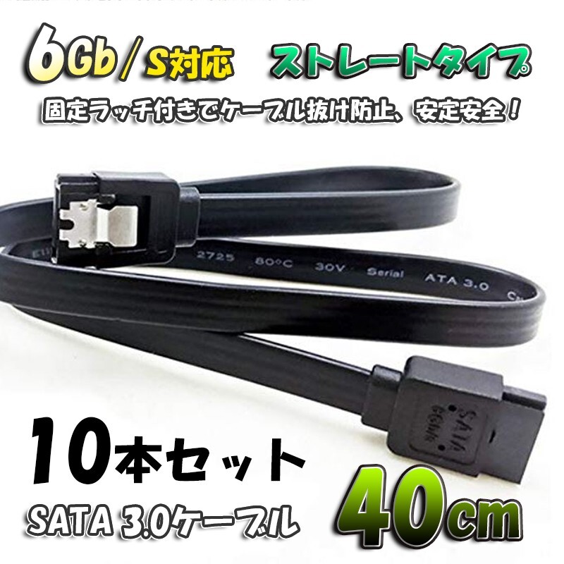 - 新品 SATAケーブル 固定ラッチ付き SATA3.0 速度6Gb/s対応 全国送料無料 ブラックケーブル 【40cm】x10本セット