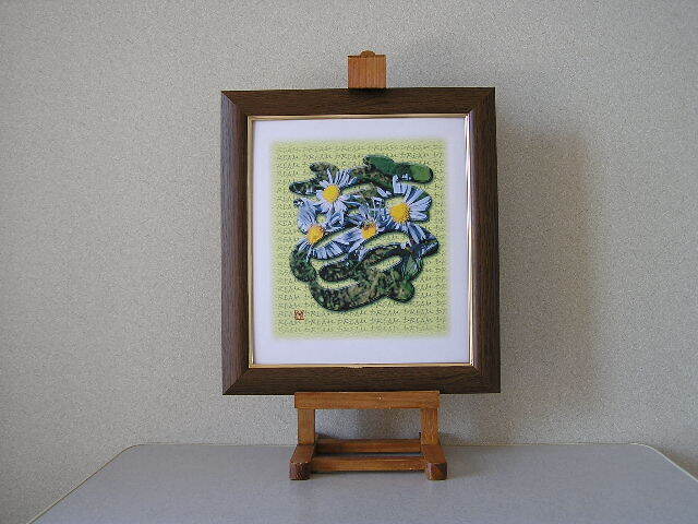 - ■アート 絵画 作品CG-22 「花と虫」 サイズ色紙 額/三脚なし