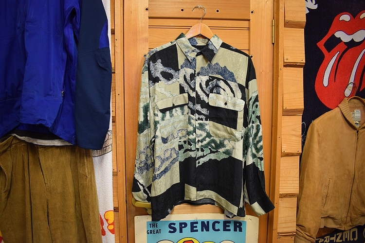 - フラッシャー付きデッドストック品◎90sビンテージGOOUCHグーチ長袖シルク総柄シャツMマルチカラーアメカジストリート未使用品 x967