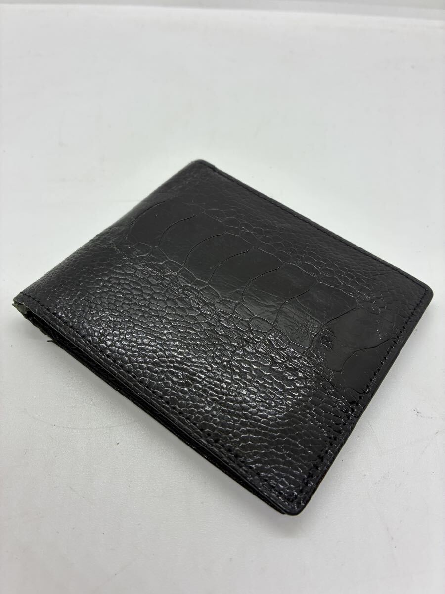 - エキゾチックレザー ブラック 二つ折り財布 シンプル
