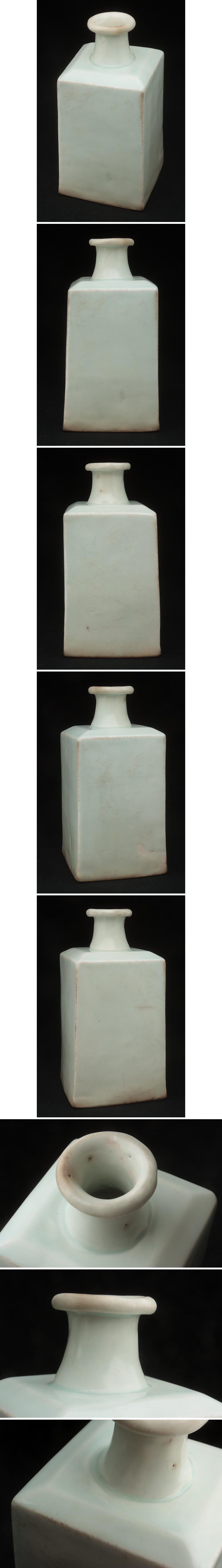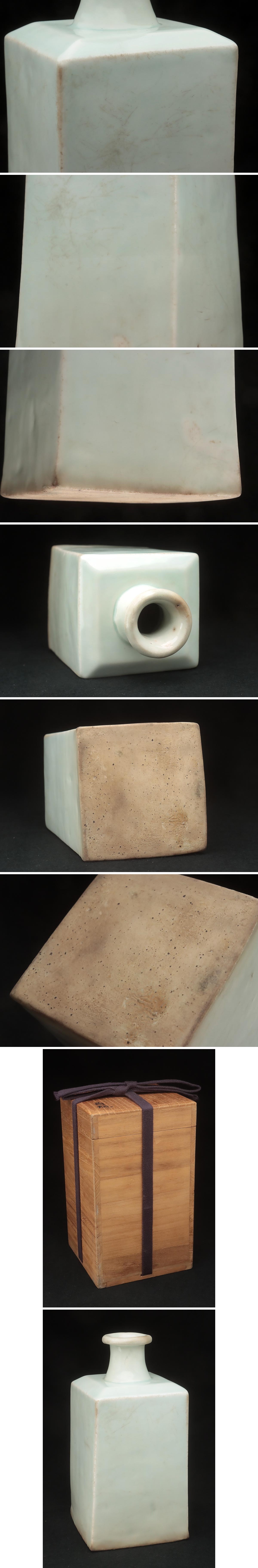 > FD167 朝鮮美術 李朝白磁角瓶 高18.7cm 木箱附・李朝白磁四方徳利・白瓷四方酒瓶・花瓶 酒器 朝鮮古陶 古美術
