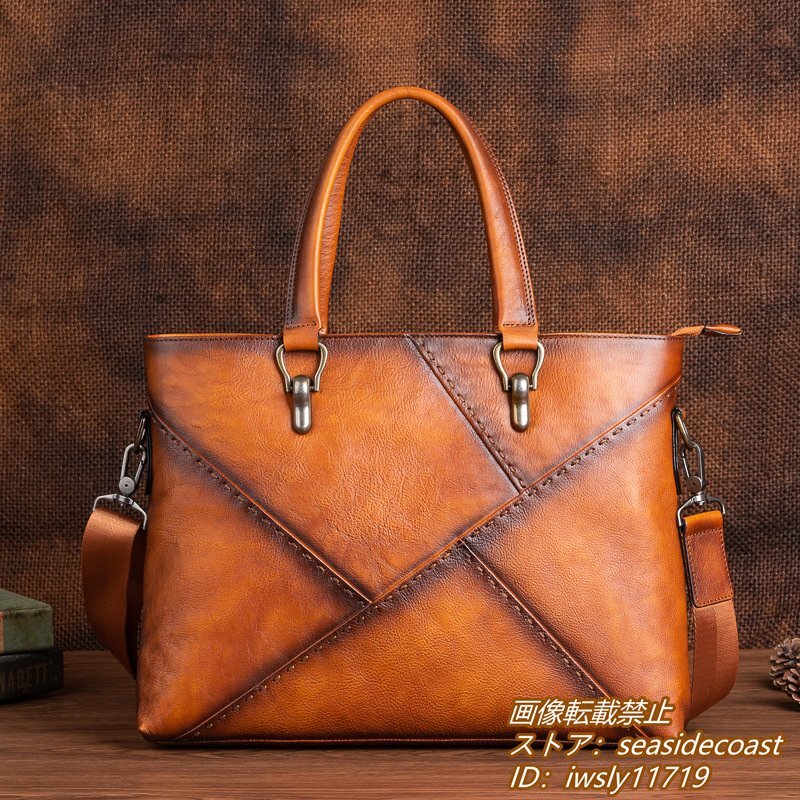 - 絶賛◆ビジネスバッグ 本革 職人手作り 手染め ブリーフケース ハンドメイド 牛革 レザー 通勤鞄 ハンドバッグ 手提げバッグ ヌメ革 新品